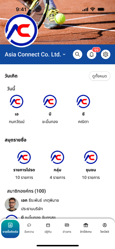 เข้าถึงข้อมูลสมาชิก รายการโปรด กลุ่ม และวันเกิดประจำวัน เพื่อให้การสื่อสารภายในเป็นธรรมชาติมากขึ้น.